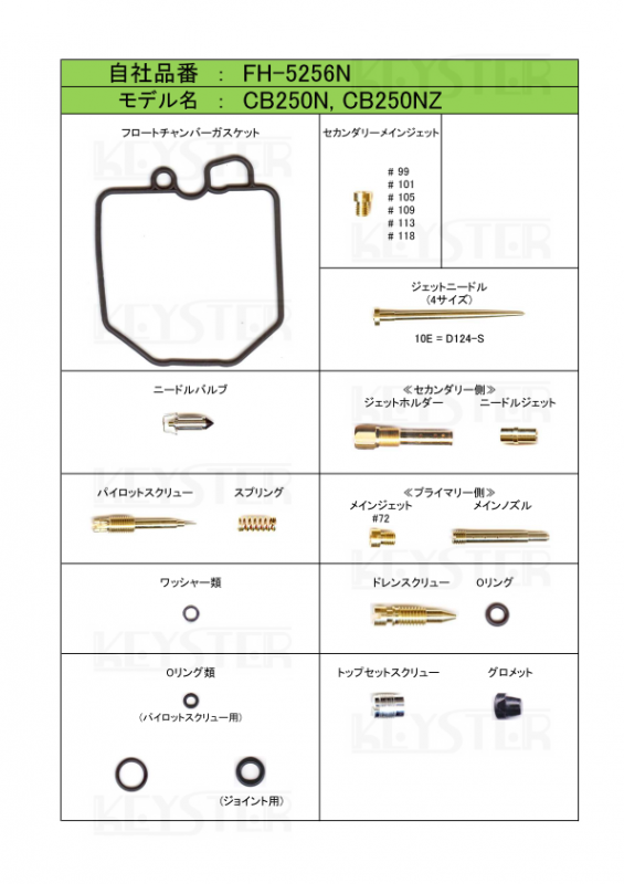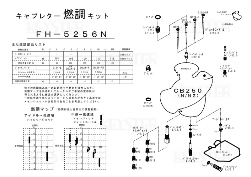 燃調キット CB250N/CB250NZ用キャブレター オーバーホール&セッティングパーツセット