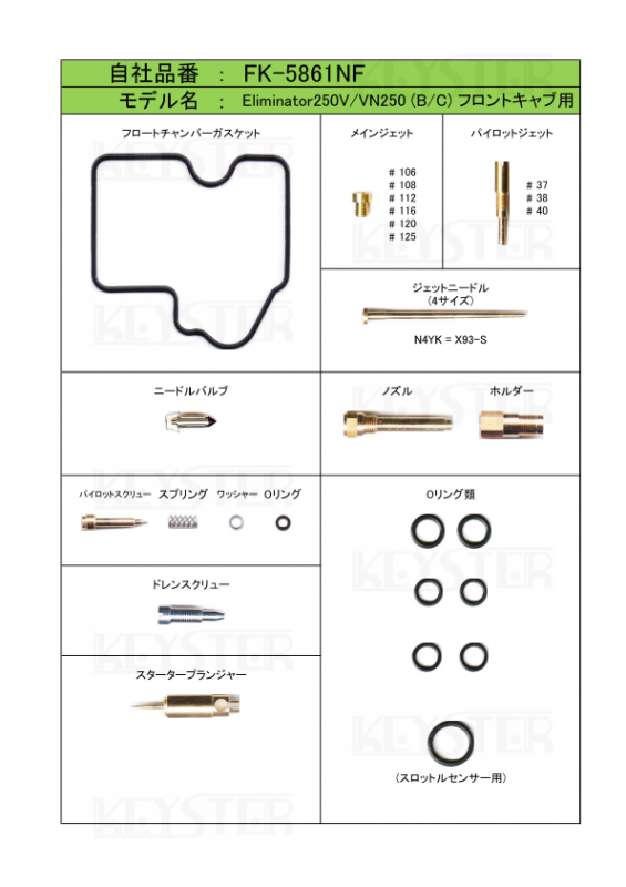 燃調キット エリミネーター250V/VN250 -B/C-, フロントキャブ用キャブレター オーバーホール&セッティングパーツセット