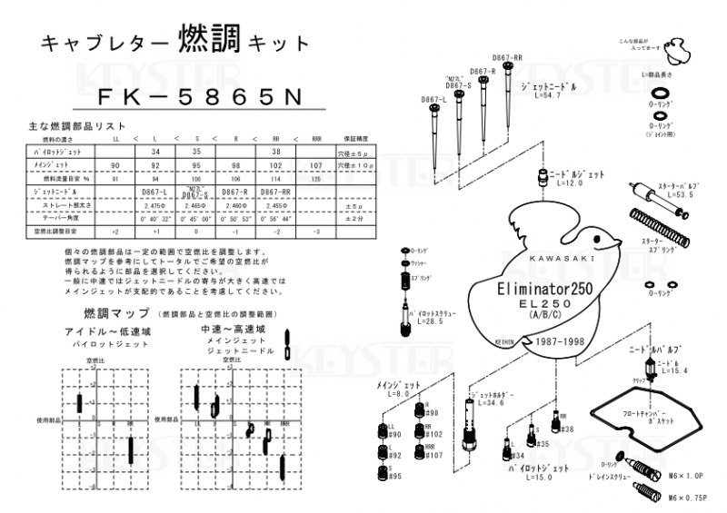燃調キット エリミネーター250/EL250 -A/B/C-用キャブレター オーバーホール&セッティングパーツセット