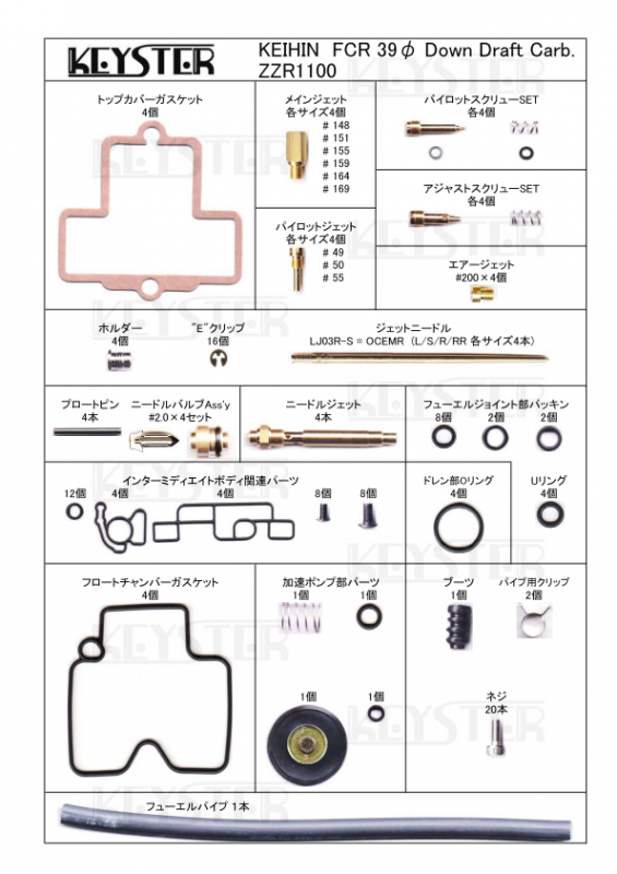 FCR燃調キット&逆転蘇生キット 39φダウンドラフトキャブレター用キャブレター オーバーホール&セッティングパーツセット (ZZR1100)